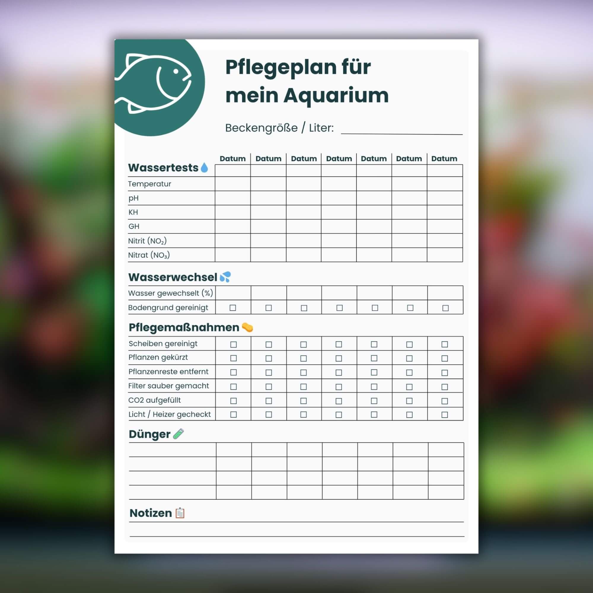 Perfekt, um deine Aquariumpflege zu planen und zu dokumentieren – als digitale Aquarium Pflegeplan Vorlage (PDF) für Einsteiger und Profis.