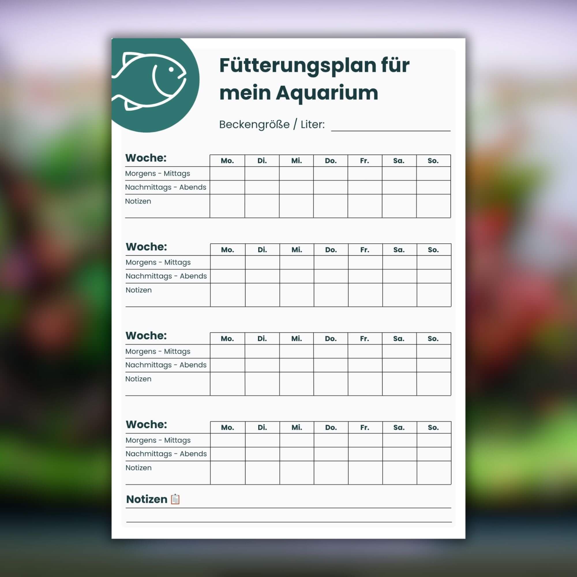 Mit diesem Fütterungsplan für Fische behältst du immer den Überblick, wann und womit deine Fische gefüttert werden. Ideal, um Überfütterung zu vermeiden oder Vertretungen während des Urlaubs einzuweisen.